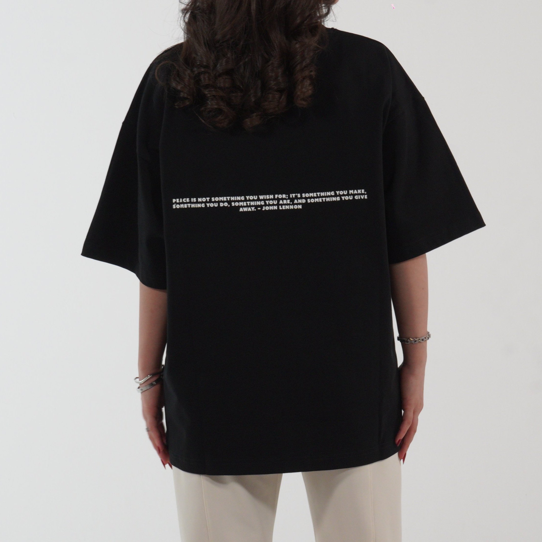 تصميم يجمع بين الأناقة اليومية والرسالة الإيجابية من خلال اقتباس يعبر عن السلام الداخلي.